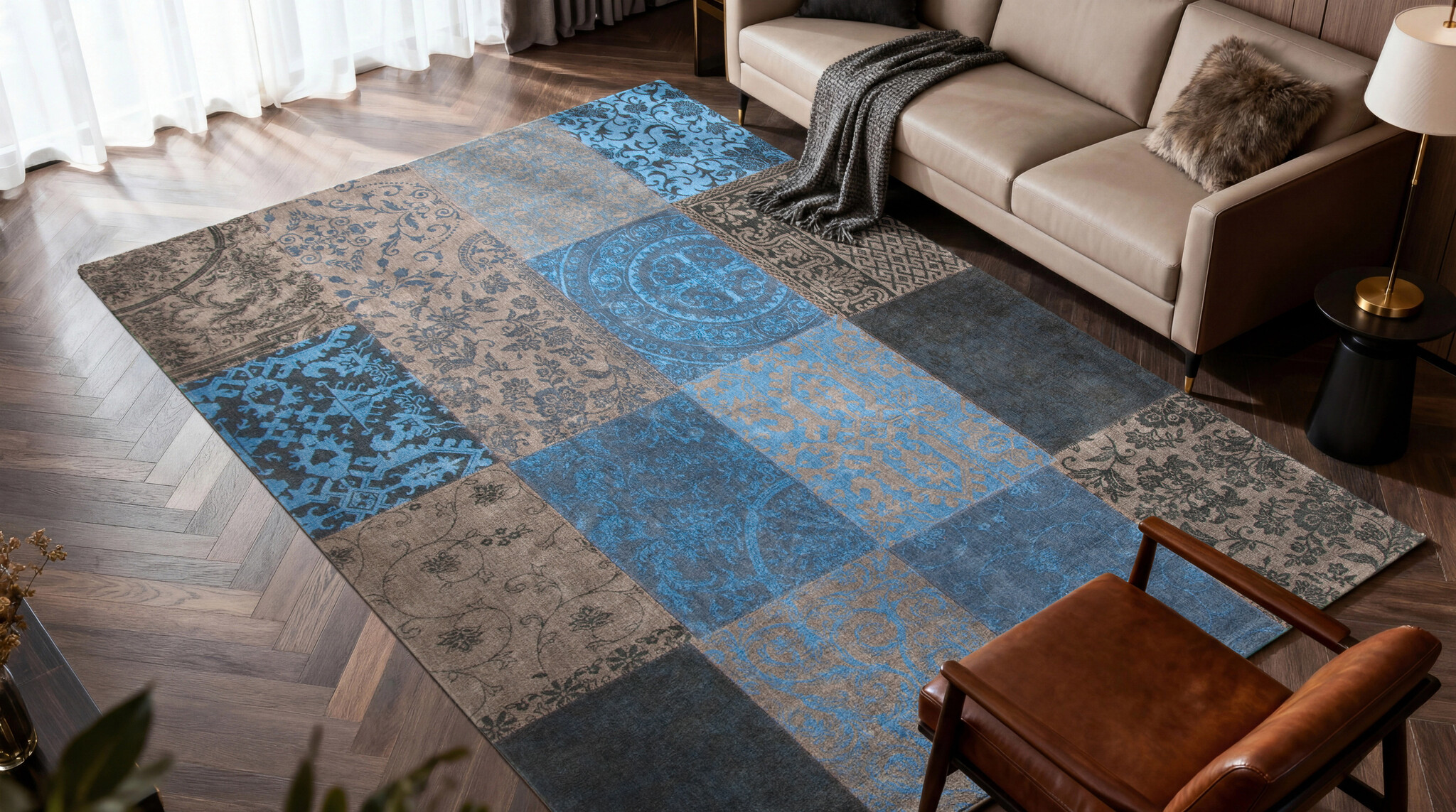 Our patchwork rugs are inspired by an eclectic mix of designs from the East, combined with original European archives of the 18th century. This beautiful combination of design gives a rich flavour of our historic past. The modern and rustic colours allow our rugs to be teamed with every possible interior style.