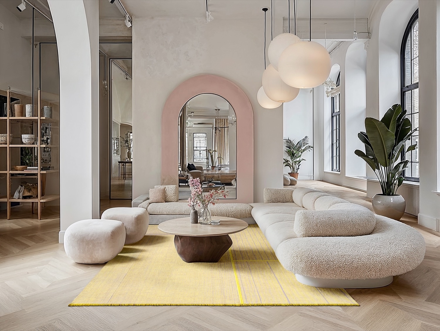 The Monochromes collection is a series of jute and wool rugs designed by Folkform in collaboration with Louis De Poortere. Known for challenging traditional manufacturing techniques, Folkform reinterprets classic textile craftsmanship through a contemporary lens. The collection draws inspiration from the historic Wilton rug, a woven textile developed in 18th-century England, characterized by its unique construction using a single backing woven around the pile yarn. This innovative approach blurs the boundaries between function and form, resulting in versatile pieces that can be used both as floor coverings and as wall decorations. With their minimalist aesthetic, natural materials, and refined textures, Monochromes rugs bring a subtle yet distinctive character to modern interiors.