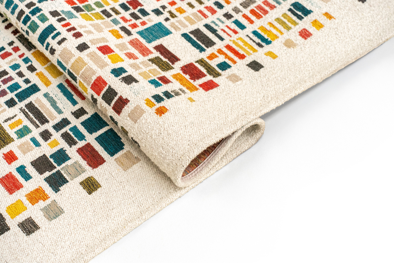 CUBIK evokes urban landscapes seen from the sky: a mosaic of streets, volumes, and shadows interlocking with almost instinctive precision. Like a reimagined construction set, every shape seems to have found its place in a subtle balance between movement and structure. In the multicolored version, CUBIK reveals a lively, joyful, almost playful energy.In the monochrome version, its nuances flow into one another, creating a soft and enveloping depth. CUBIK is the poetry of organized chaos, transforming the floor into a terrain of visual escape. A harmonious maze where the gaze loves to get lost, amidst rhythm, balance, and graphic daydreams.