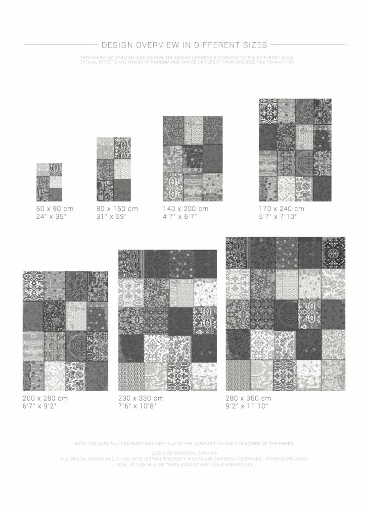 Ces carpettes sont produites en Belgique avec un grand savoir-faire. Les tissés d'une seule pièce ont un look usé et des effets de coutures. Leur look intemporel s'adapte à toute décoration qu'elle soit moderne ou classique.